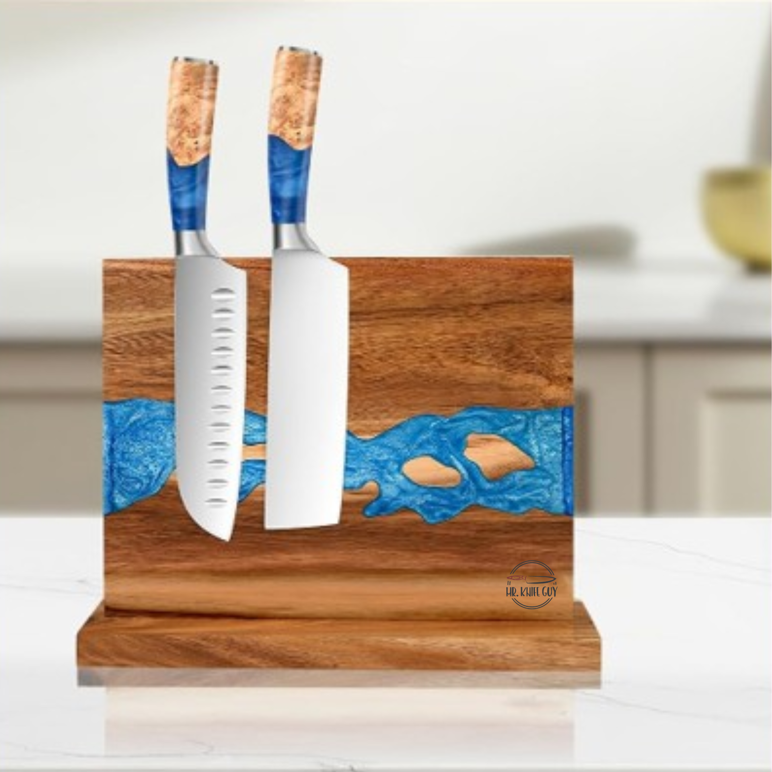 Mr. Knife Guy® Signature Blue Resin & Burl Freestanding Magnetic Knife Block